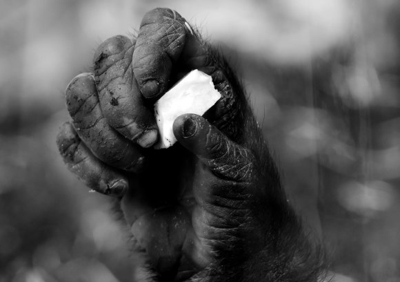 원숭이의 손. 인간과 비슷하며 손가락 다섯 개로 물건을 집을 수 있다.