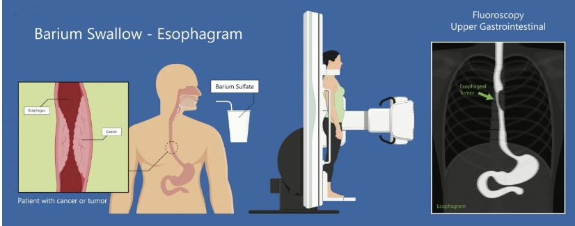 엑스선은 공기나 살을 쉽게 통과하지만, 밀도가 높은 금속이나 무거운 화합물은 통과하지 못한다. 황산바륨은 이러한 특성을 이용해 위장관의 구조를 선명하게 보여준다. 환자가 황산바륨을 복용하면 이 물질이 위와 장 내부를 코팅하여, 엑스선 촬영 시 종양, 궤양, 협착 같은 이상 부위를 더욱 뚜렷하게 확인할 수 있다.