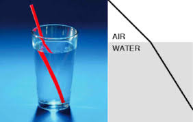투명한 유리컵에 스트로를 꽂아두고 바라보면, 스트로의 방향은 수면과 만나는 면에서 크게 굴절되어 보인다. 이런 현상은 빛이 공기 중에서 물로 들어갈 때, 밀도가 진한 물질을 만나면서 빛의 진행 속도가 약간 느려지기 때문에 나타난다. 물 또는 유리 면에서 빛이 휘어지는 이런 현상을 굴절(屈折 refraction)이라 한다.