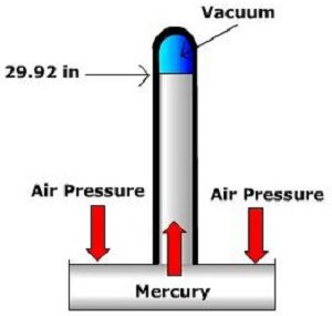 기압계에는 몇 가지가 고안되어 있으나, '수은기압계’와 ‘아네로이드 기압계’ 두 가지가 이용되고 있다. 수은기압계는 이탈리아의 위대한 과학자 갈릴레오의 조수였던 에반젤리스타 토리첼리(Evangelista Torricelli 1608-1647)가 처음 만들었다. 그는 길이가 80cm(800mm) 정도 되는 가느다란 유리관 속에 수은을 가득 채우고, 유리관 한쪽을 밀봉한 후, 그 유리관을 뒤집어 수은이 담긴 접시에 세웠다. 그러면 수은은 아래로 내려가는데, 유리관 위쪽이 진공 상태가 되므로 수은의 기둥은 737~775mm(평균 760mm) 높이에서 멈추게 된다. 기압이 높은 날은 수은 기둥이 높아지고, 기압이 낮은 날은 반대가 된다.