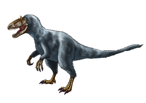 원시적인 티라노사우루스 계통의 육식 공룡들 사이에서는 깃털의 흔적이 발견된 사례가 있었다. 2004년에 중국에서 보고된 딜롱Dilong의 경우, 꼬리와 턱 부근에 남은 피부 흔적 화석을 통해서 티라노사우루스 계통의 공룡들 사이에서도 깃털이 있었다는 것을 증명했다.