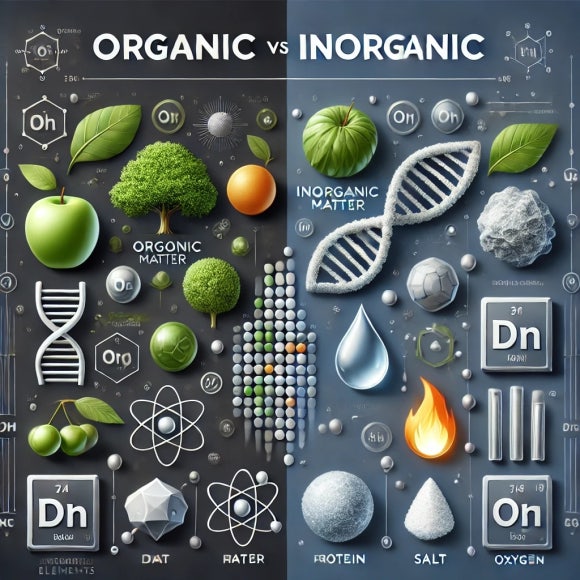 사전적으로 유기물은 생물체에서 유래한 물질을 의미하며, 단백질, 탄수화물, 지방과 같은 생명체의 구성 성분이 이에 속한다. 반면, 무기물은 생물체에서 유래하지 않은 자연적인 물질을 의미하며, 대표적으로 물, 암석, 금속 등이 있다.