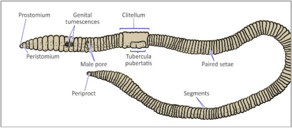 환형동물로 분류되는 지렁이는 전구(前口, prostomium)라 불리는 주둥이의 근육으로 부식물이 포함된 흙을 삼킨다. 눈, 코, 귀, 발이 없는 지렁이는 전구를 이용하여 터널을 판다. prostomium 옆의 peristomium은 ‘주둥이 주변’이라는 뜻이다.