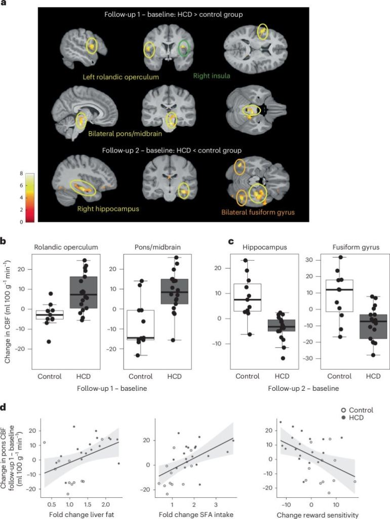 단기간 동안 고칼로리 간식을 과도하게 섭취하면 뇌에서 인슐린이 정상적으로 작용하지 못하게 되는 것으로 나타났다. [자료= Nature Metabolism (2025)]