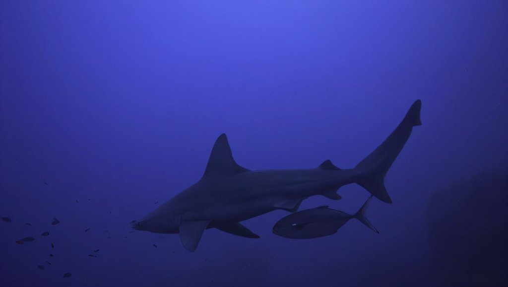 상어 뒤에 숨어 몰래 사냥하는 물고기가 포착돼 눈길을 끈다. 포식자를 피하면서 사냥감에도 눈에 띄지 않아 높은 사냥 성공률을 보였다.