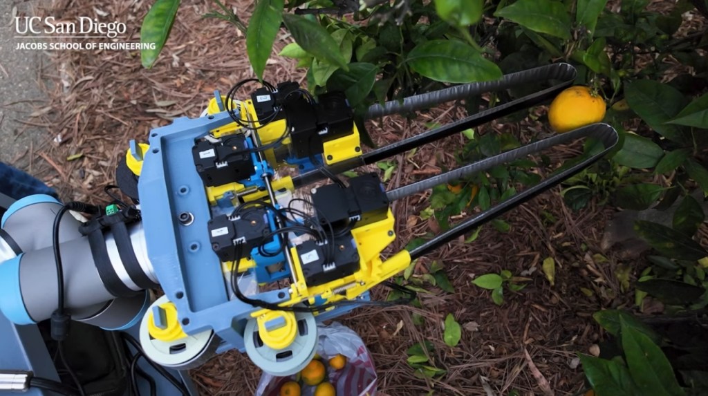 로봇손이 안정적으로 오렌지를 따는 모습. [사진=David Baillot/University of California San Diego]