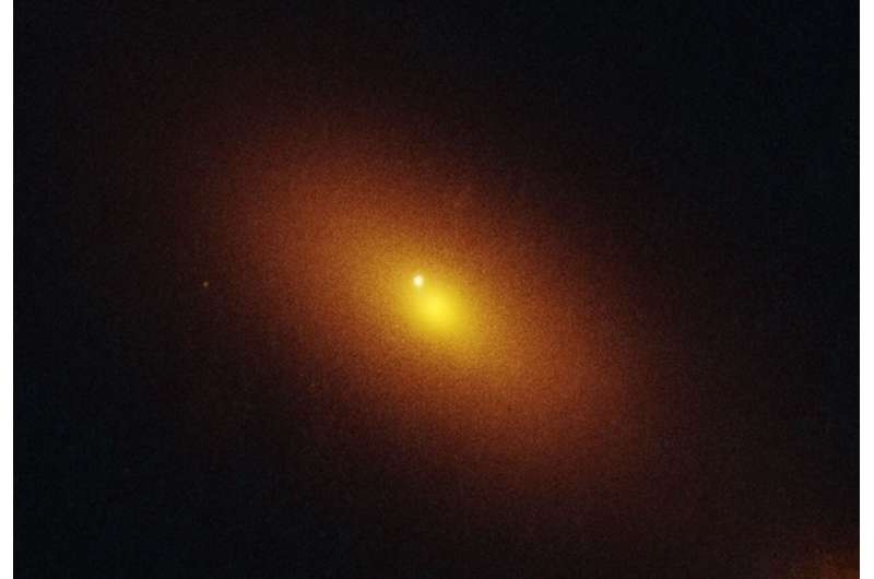 떠돌이 초대질량 블랙홀의 흔적이 포착된 먼 은하의 허블 우주망원경 이미지. [사진=NASA, ESA, STScI, 유한 야오(UC 버클리), 조셉 드파스칼레(STScI)]