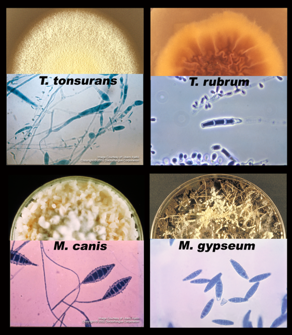 각종 백선을 일으키는 피부사상균의 현미경 사진이다.