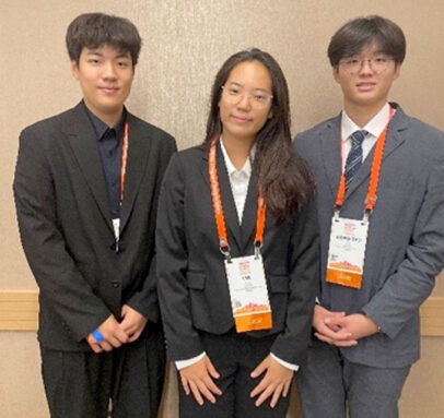 자력을 이용하여 미세중력의 효과를 증명하는 실험으로 제75회 ISEF 수상자로 선정된 이동현(좌), 김리야(중), 이동규(우) 세 고교생이다.
